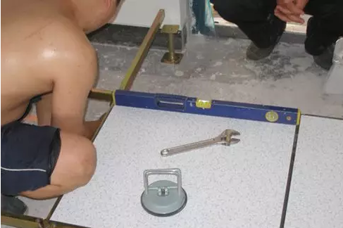 把支架整個連接完以后,安裝活動地板。 地板是要靠“吸”的。